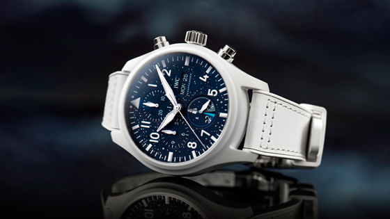 The Pilot’s Watch Chronograph Edition “Inspiration4” features a case made of stunning white ceramic. The unique color results from a complex manufacturing process in which zirconium oxide is mixed with other metallic oxides in a precisely defined ratio. The dark blue lacquered dial has been padprinted with countless stars and captures the depth and darkness of space. It also bears the Inspiration4 logo. Inside beats the IWC-manufactured 69380 calibre chronograph movement. On each of the four watches, the titanium case back has been engraved with the name and mission value represented by the respective crew member. The chronographs are fitted with an eyecatching white rubber strap featuring a leather inlay.
