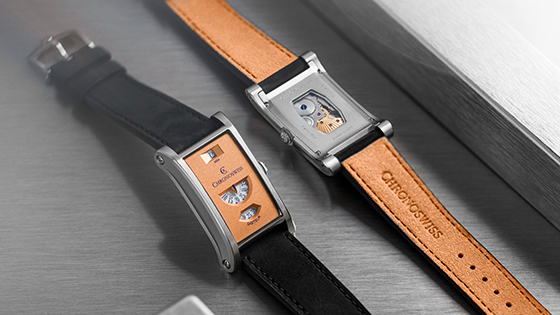 The display is powered by new hand-wound Calibre Chronoswiss C.85757. Beating at 3 Hertz, the movement is equipped with an exclusive module developed entirely in-house. It manages the energy requirements of the jumping-hour system, while ensuring the smooth progression of the minutes and seconds discs.