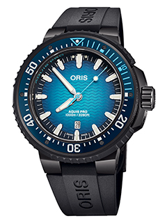 The Hölstein-based company offers a new version of its diving watch with a bezel-locking system that prevents accidental adjustments underwater. Water-resistant to 1,000 metres, the 49.5mm multi-part grey PVD-coated titanium case houses an automatic calibre. The dial features a blue gradient with a wave pattern. The hands, numerals and hour markers are coated with Super-LumiNova. The timepiece comes with two blue and black rubber straps.