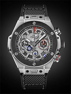 This 44mm reinterpretation featuring a titanium and black ceramic bezel places the iconic Unico movement centre stage. The calibre’s colours, contrasts and structure highlight the unique construction of the chronograph, with a column wheel on the dial side and an integrated flyback function designed to be more visible than ever. The multi-level dial combines textures and surfaces, lending depth and a resolutely technical touch.