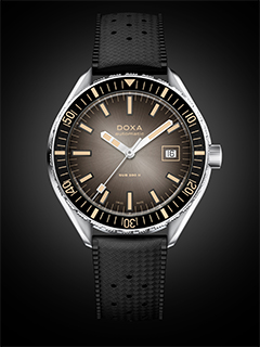 A subtle yet bold evolution of the brand’s iconic diver’s watch, this timepiece retains its 200-metre water resistance, while appearing in a slimmer case. Despite its 44mm diameter, the compact structure makes it look more like a 42mm model. As well as featuring its first elegant smoky-finished dial (available in black, grey, blue, green and red variations), the collection also introduces a new retro-design textured rubber strap.