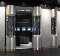 Entering the new Fine Watch Room one can immediately see the three dimensional, extra-clear glass Richard Mille watch sculpture, a distinctive feature of all the brand's boutiques and which gives the impression of entering into the heart of the movement.